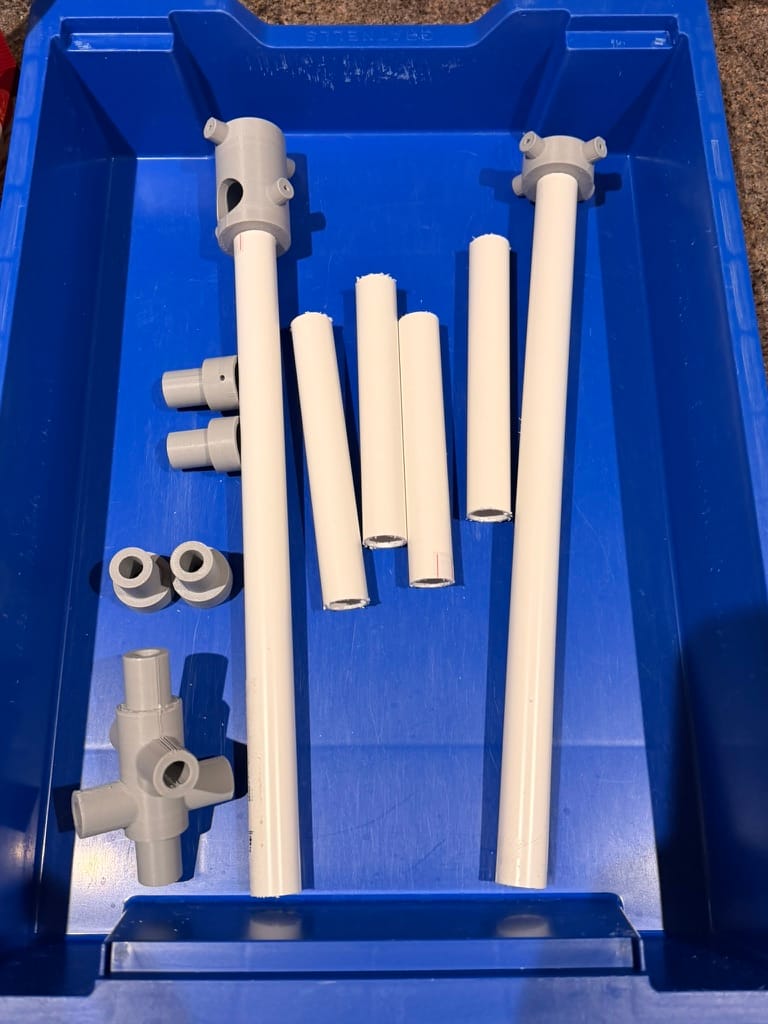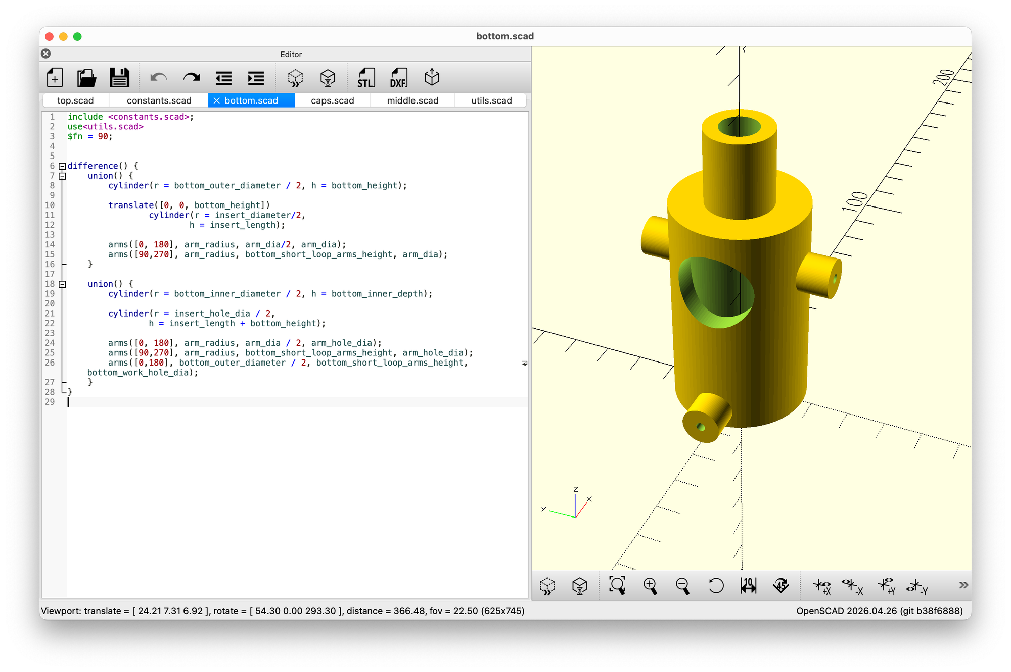 Important to note, that I changed the outer diameters of the end caps, but not the central connector, otherwise I'd have to modify the pipe lengths. I avoided any changes to geometry that would affect the placement of the rods.