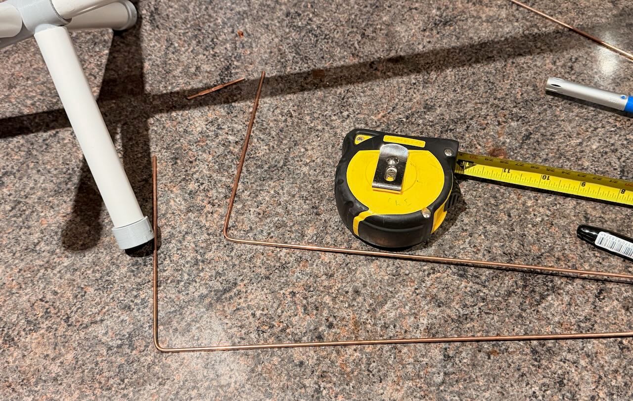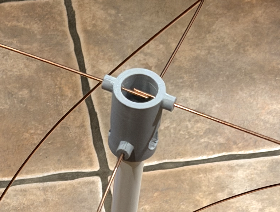 - 2.4mm copper-coated steel TIG welding rod (OpenSCAD diameter parameter adjusted — electrically insignificant at 137 MHz)